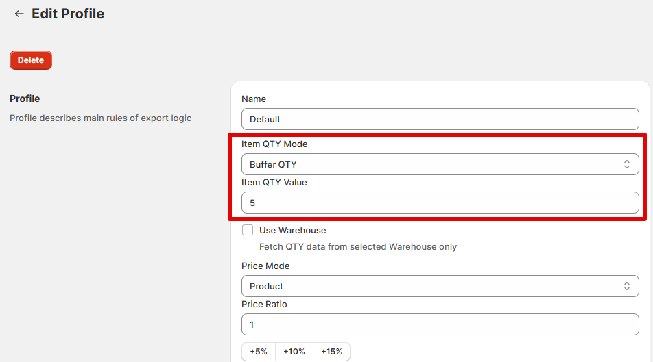 “Item QTY Mode” and “Item QTY Value” are used to set the rules for quantity synchronization. For example, you can use the “Custom” mode to set the quantity at a constant value. “Product” mode is the default, and it uses the Shopify values.