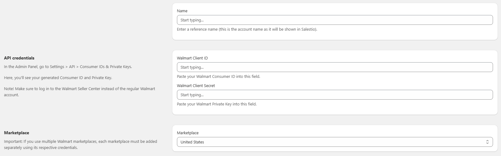 Important: If you use multiple Walmart marketplaces, each marketplace must be added separately using its respective credentials.